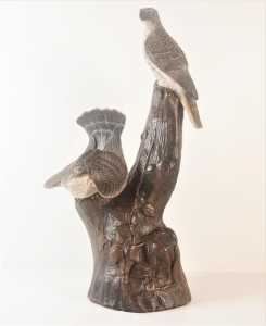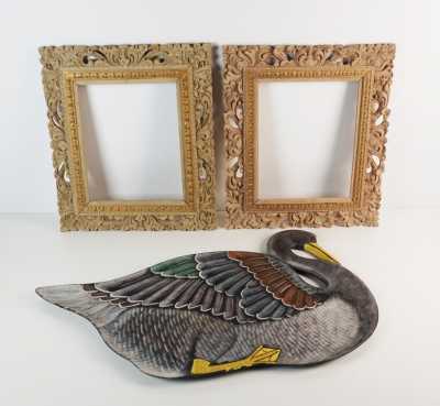 On joint un plateau en bois peint figurant un canard en léger relief, 20e siècle, L. 58 cm.