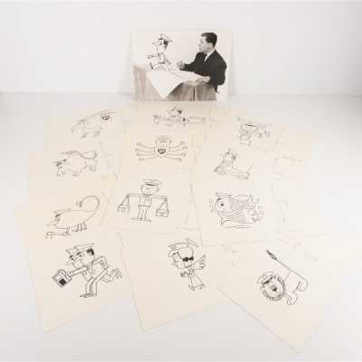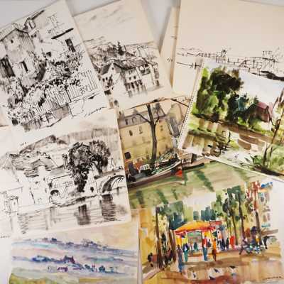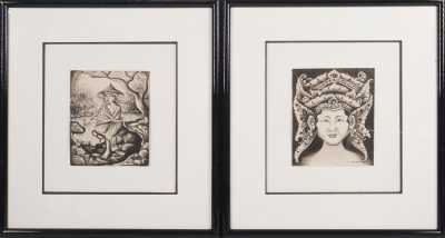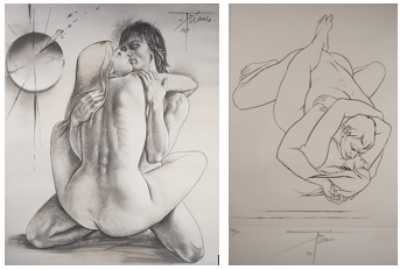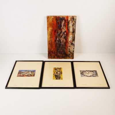 On joint trois lithographies de l'artiste, "Etudes de nus", signées et numérotées, 7 x 13 cm ; 12.8 x 7 cm et 6.8 x 12.5 c...