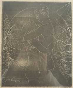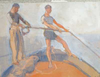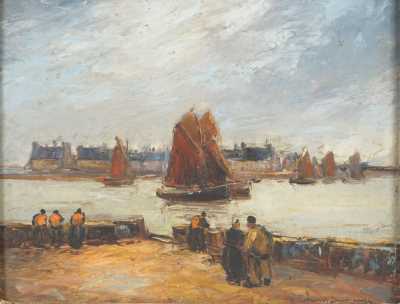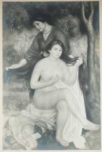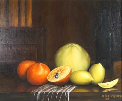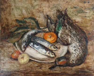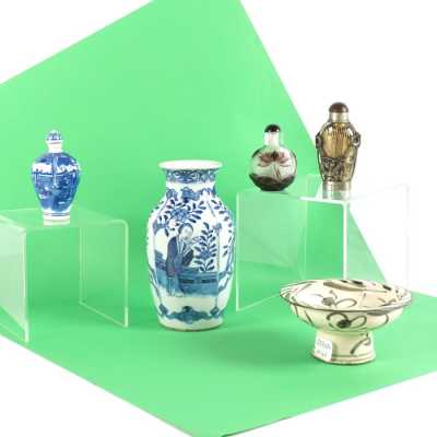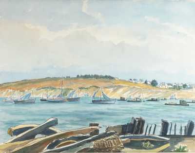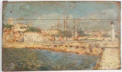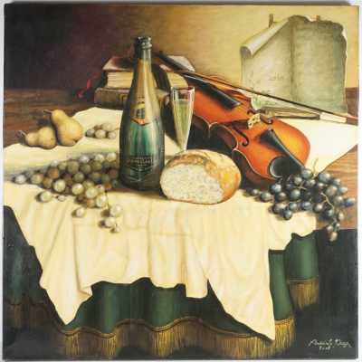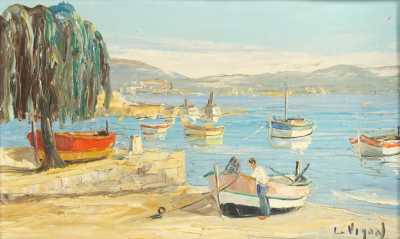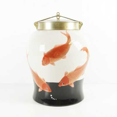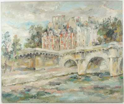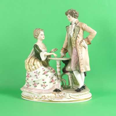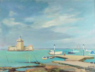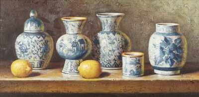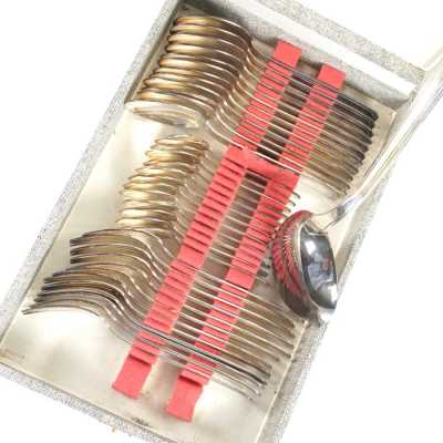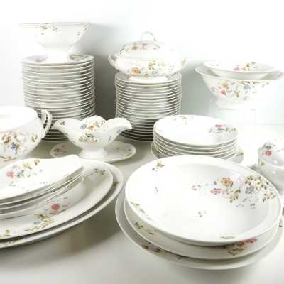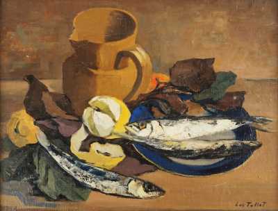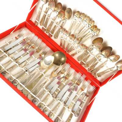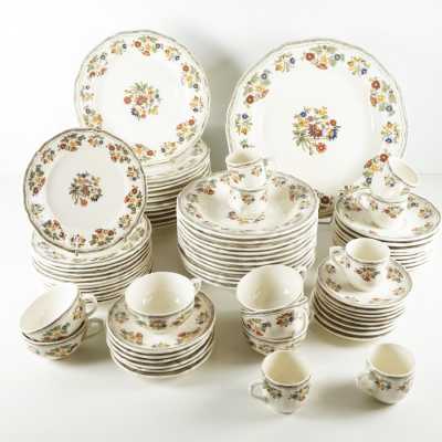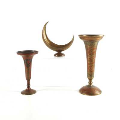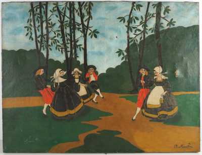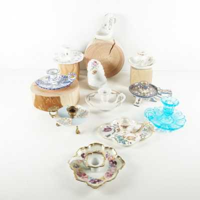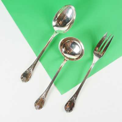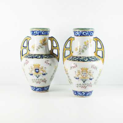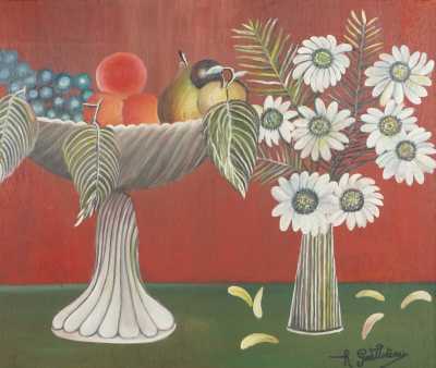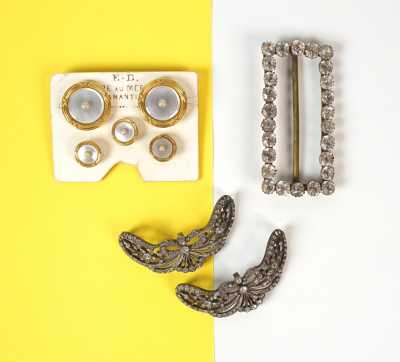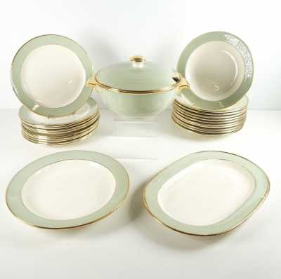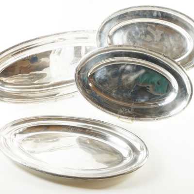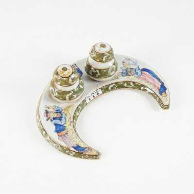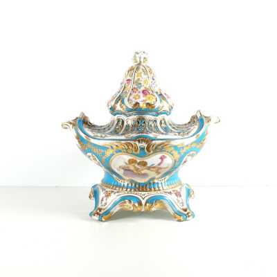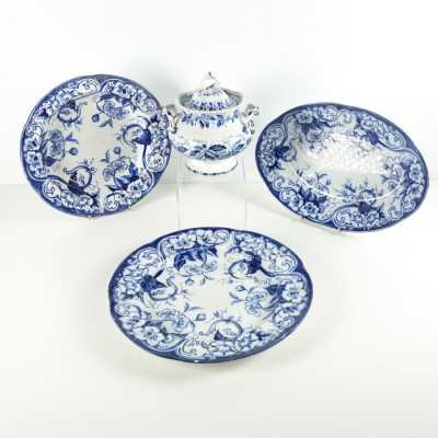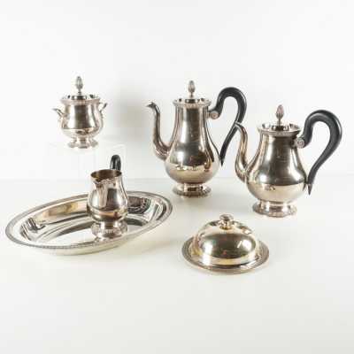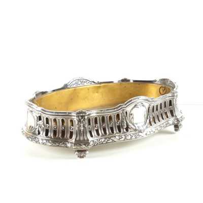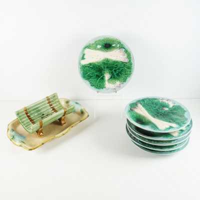 On y joint un petit plateau ovale à anses, dans le même goût.