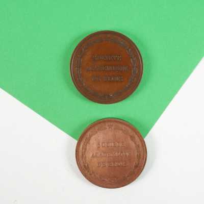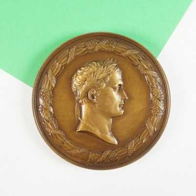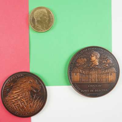 - Médaille, cuivre, représentant sur l'avers Quartier Général de Napoléon Ier au camp de Boulogne, Château de Pont de Briques, et sur le revers une représentant du camp, signée JC. AMMANN, tranche lisse, mar...