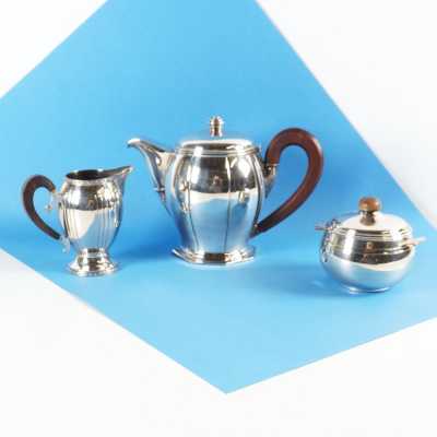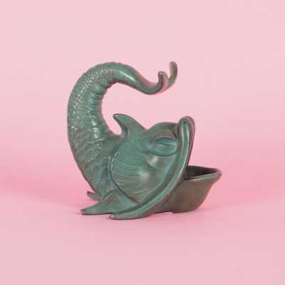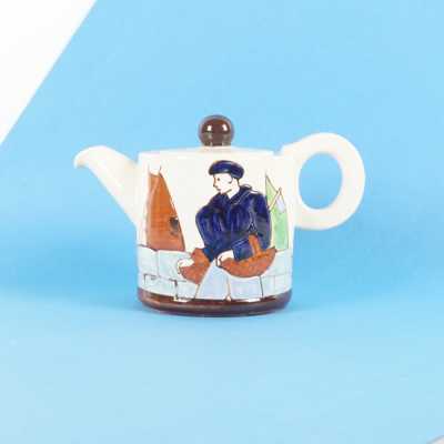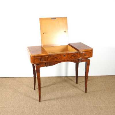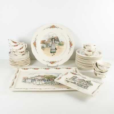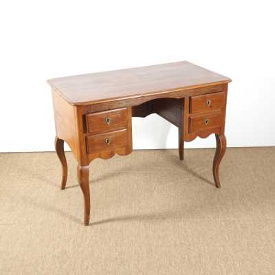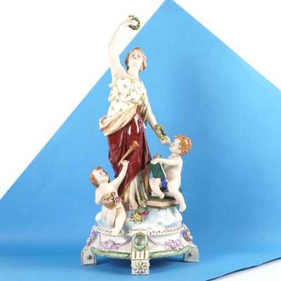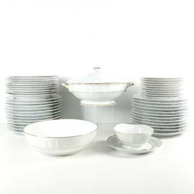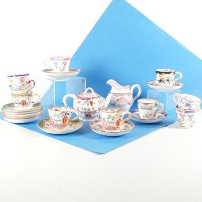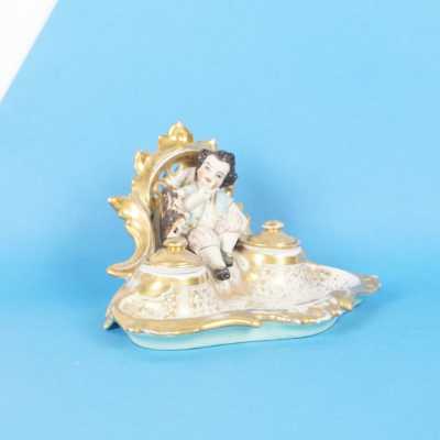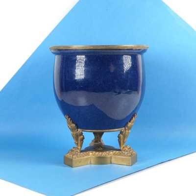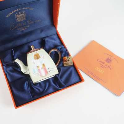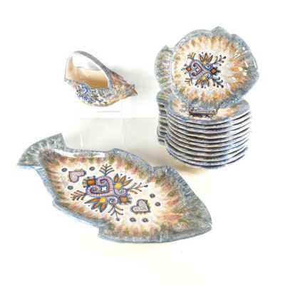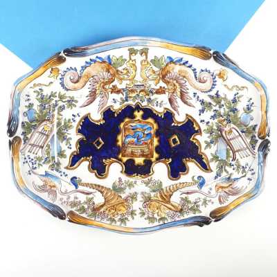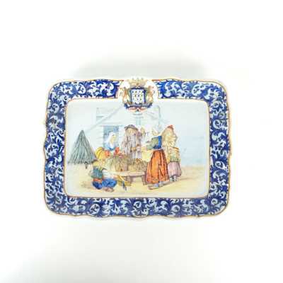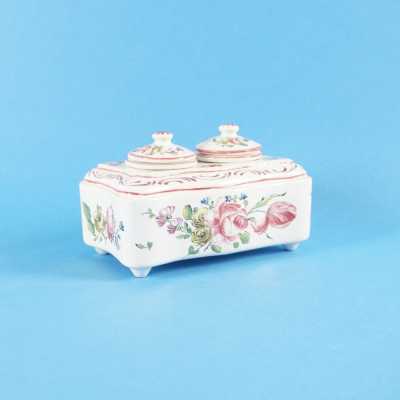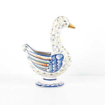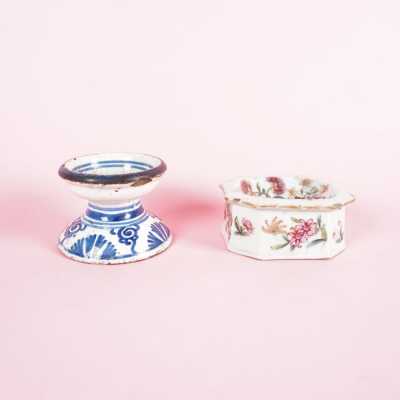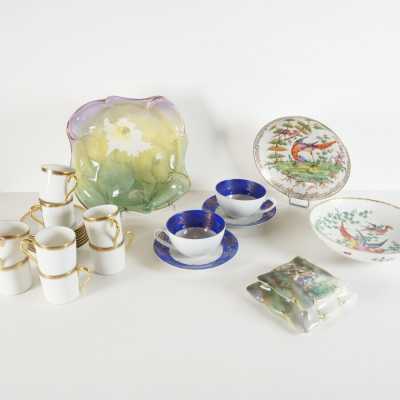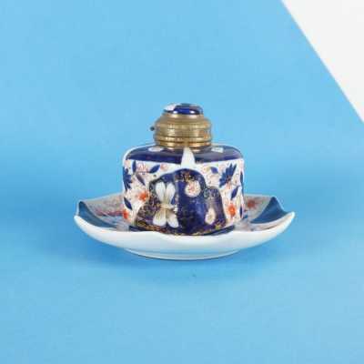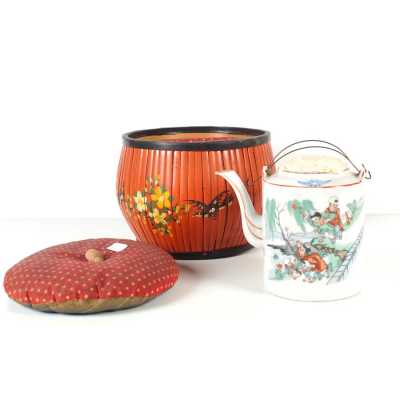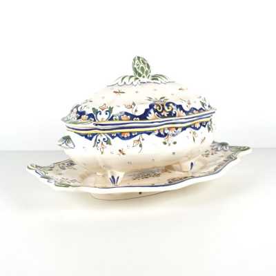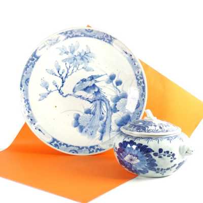 On joint un bouillon couvert, porcelaine bleu blanc à décor de fleurs, deux têtes de shi-shi formant les anses, Japon, L. 25 cm.