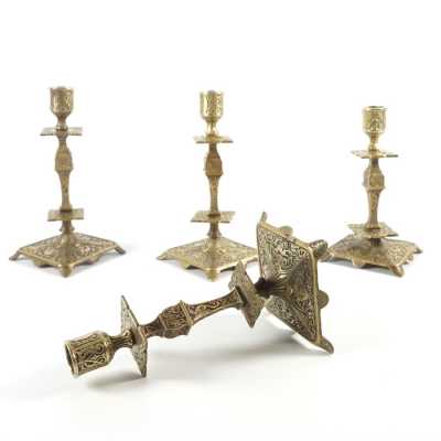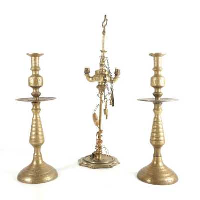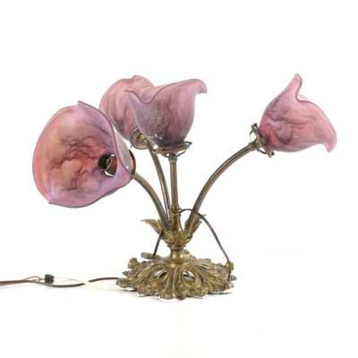 On joint un pied de lampe à quatre feux en métal doré, H. 57 cm.