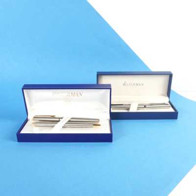 On joint de la même marque, un stylo à bille, métal argenté, dans son coffret.