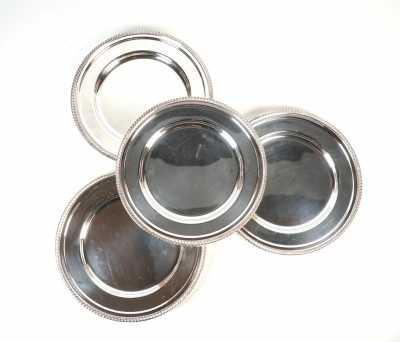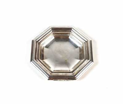 - une soucoupe d'un autre modèle et d'un autre orfèvre, ornée de plumetis sur fond guilloché, D. 11.5 cm.