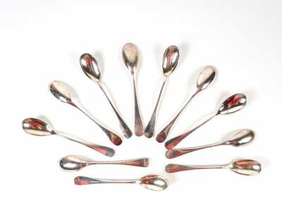 - Eugène SOURY (1880-1897) : 3 petites cuillères modèle filet, L. 14 cm.