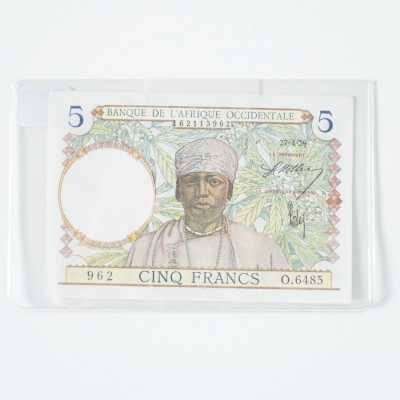 - BANQUE DE L'AFRIQUE OCCIDENTALE : 5 Francs 27.4.39, TB; 5 Francs 14.12.42, B;