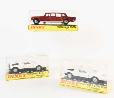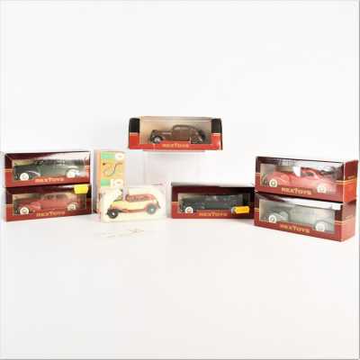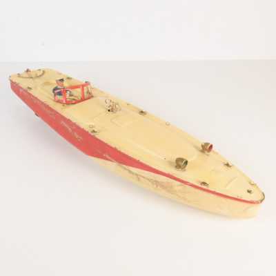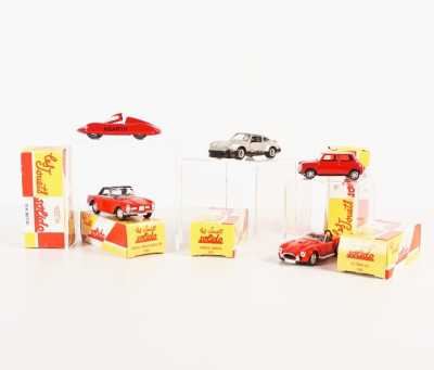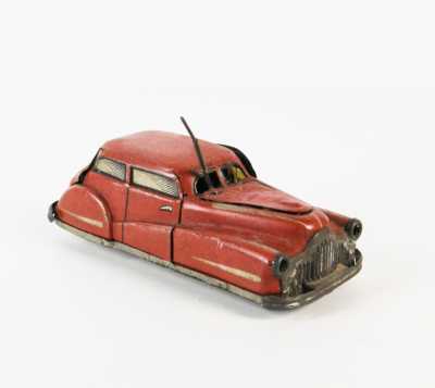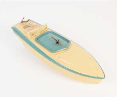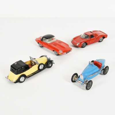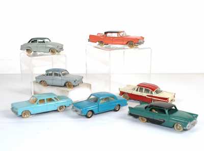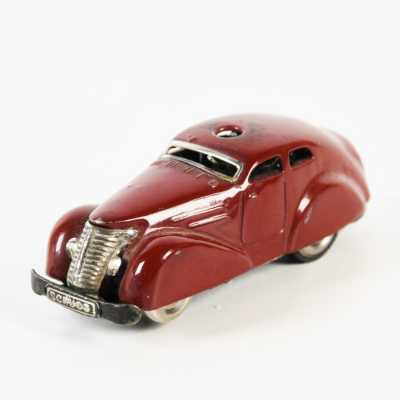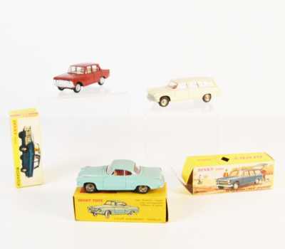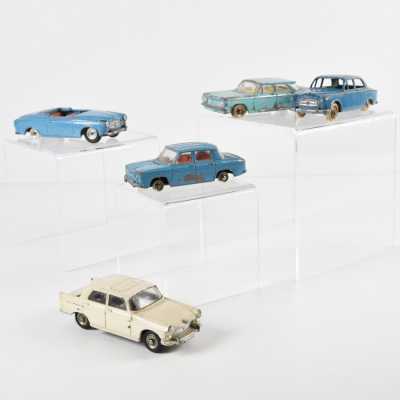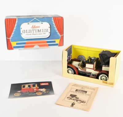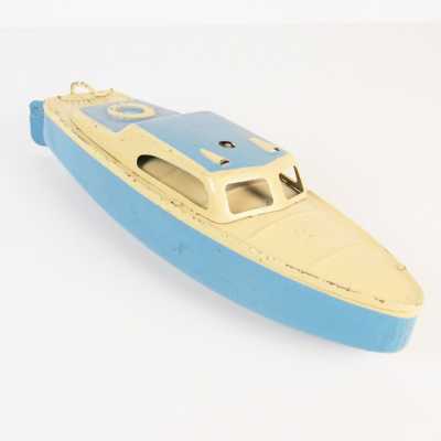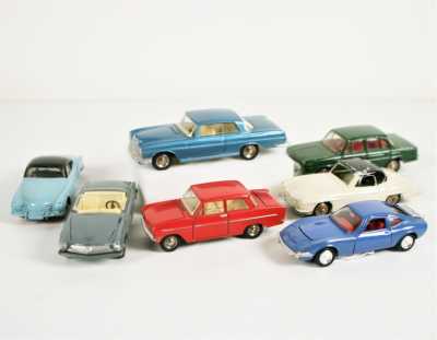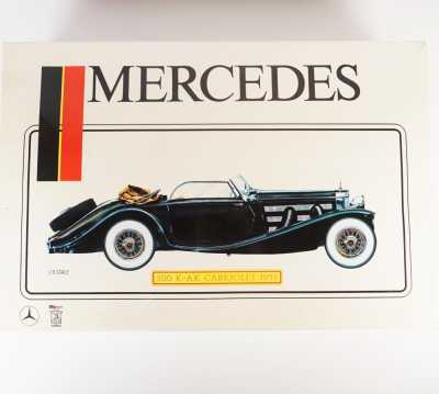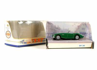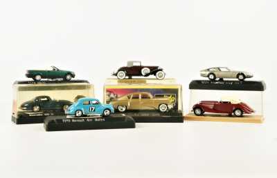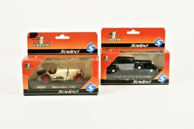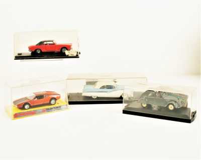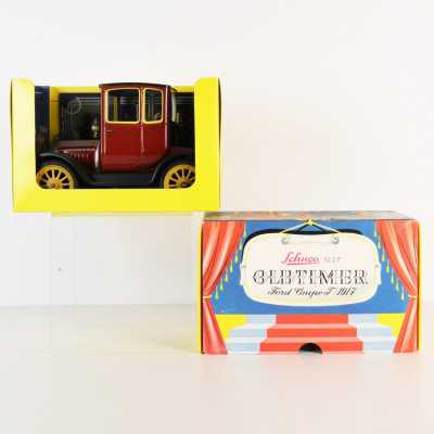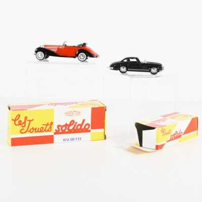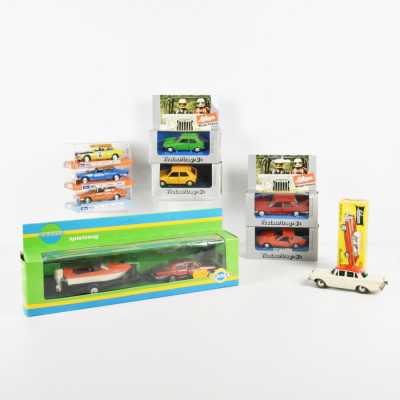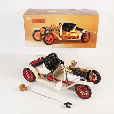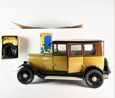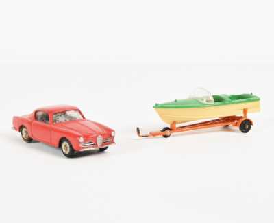 On joint un modèle GAMA, véhicule Mercedes 450 SE bordeaux échelle 1/43 tractant un bateau, dans...