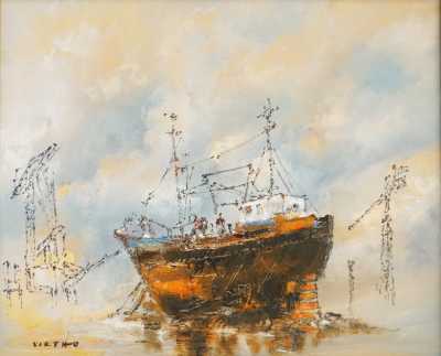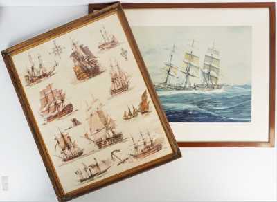 On joint, Albert SÉBILLE (1874-1953), gravure représentant différents bâtiments de haut bords, ...