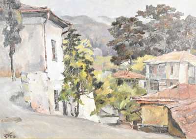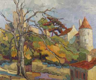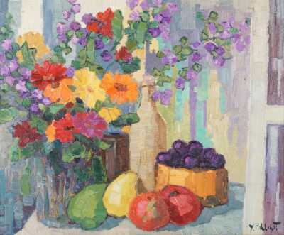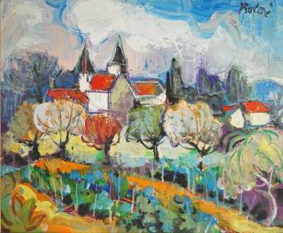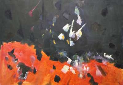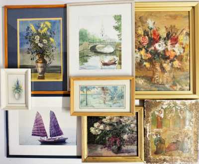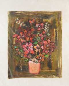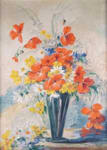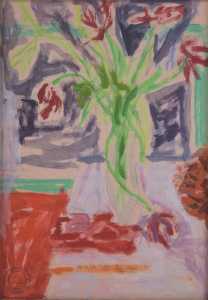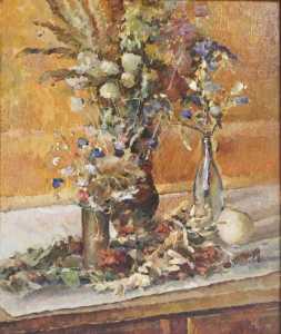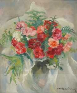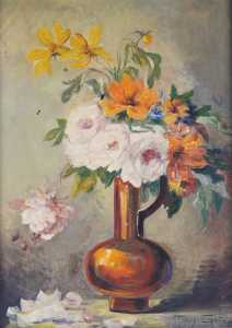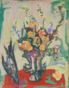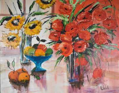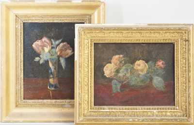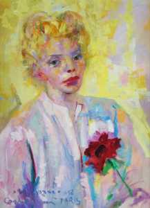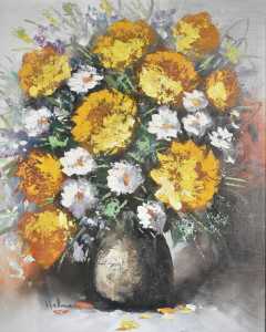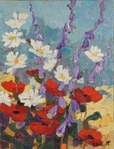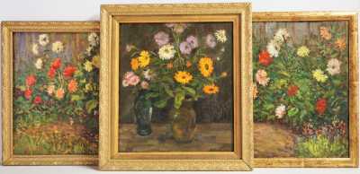 On joint, Ecole Russe du 20e siècle, "Bouquet de fleurs" 1993, huile sur carton signée et datée en bas à droite, 38 x 33.5 cm.