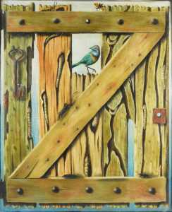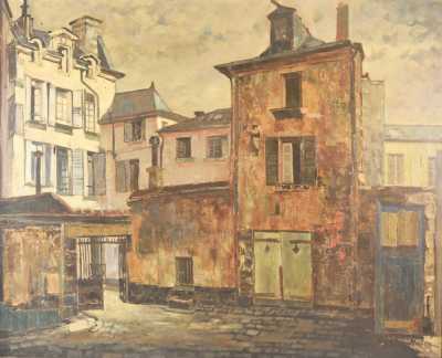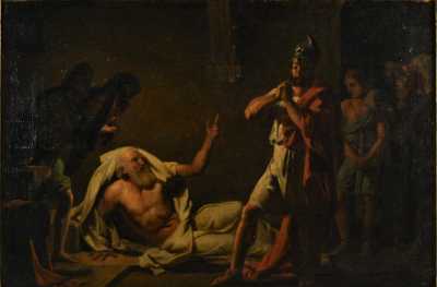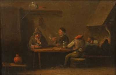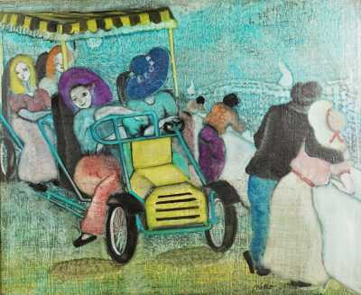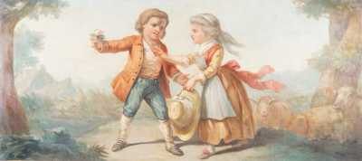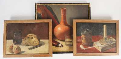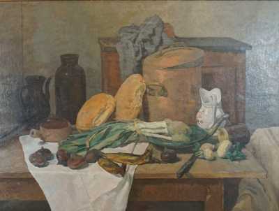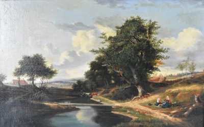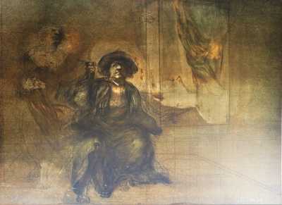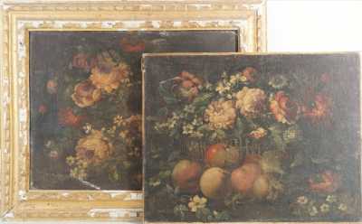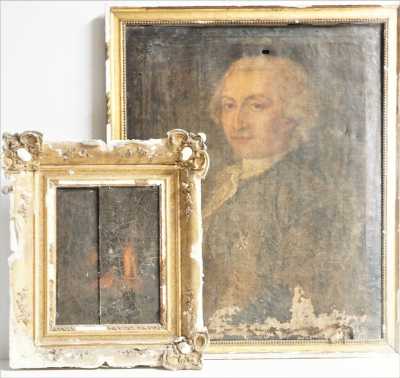 On joint une huile sur panneau ancien dans un encadrement en bois stuqué et doré ancien (panneau fendu, manques et acciden...