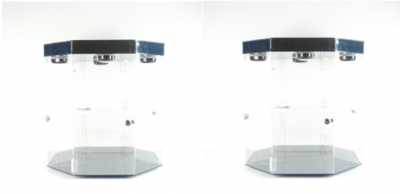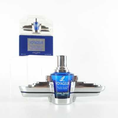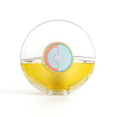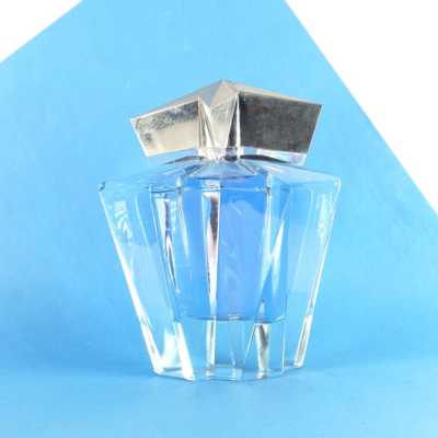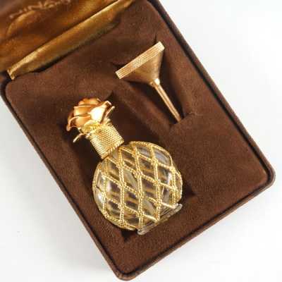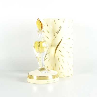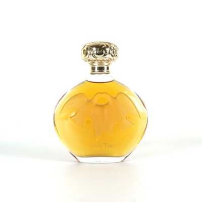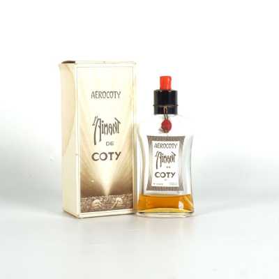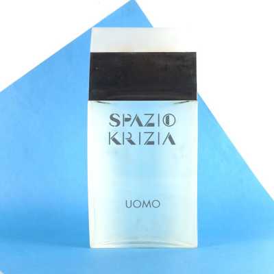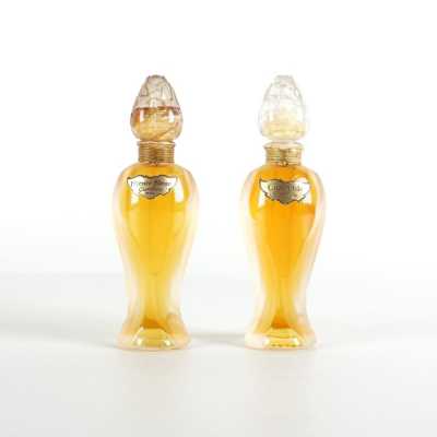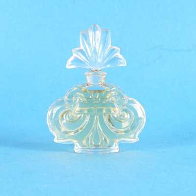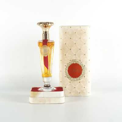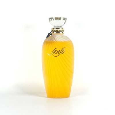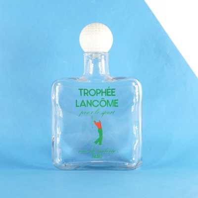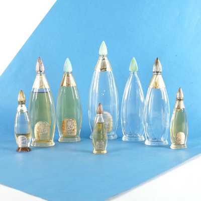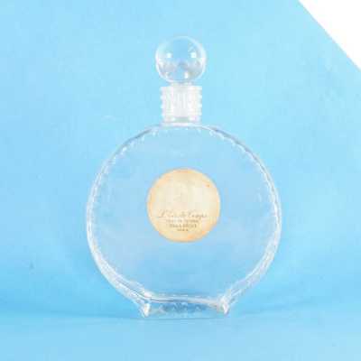 - "Espace", eau de Cologne, flacon en verre incolore, bouchon en métal doré, H. 19.3 cm (vide).