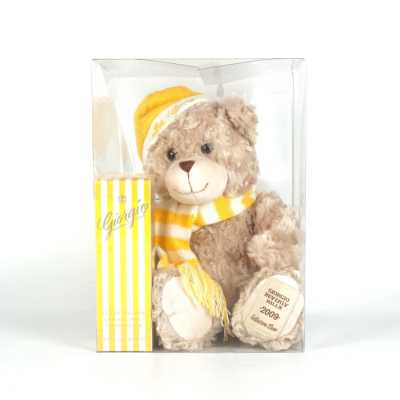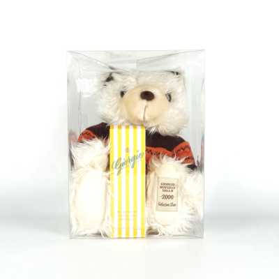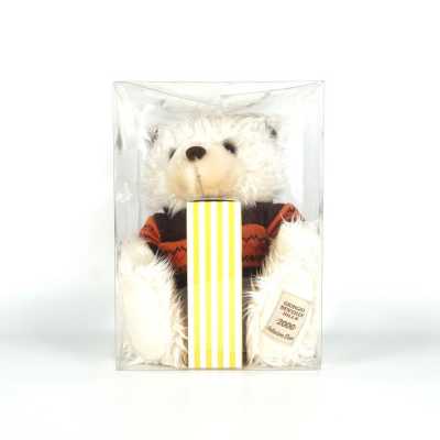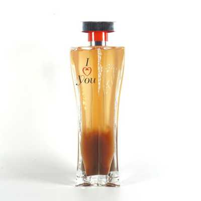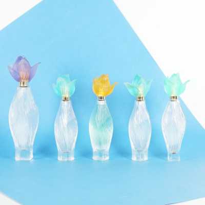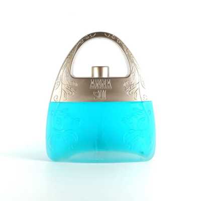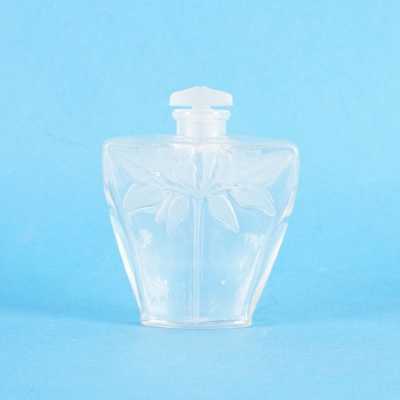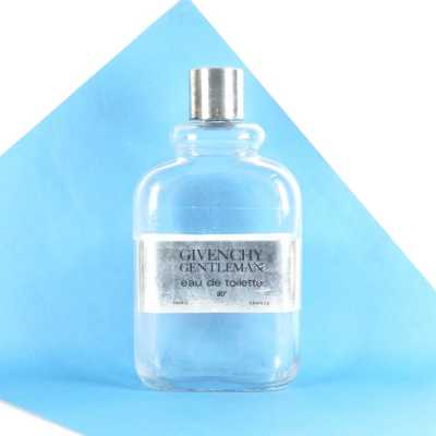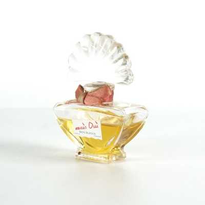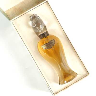 - "Bouquet", flacon en verre incolore, étiquette polychrome, bouchon en bakélite vert, H. 7.5 cm (vide).