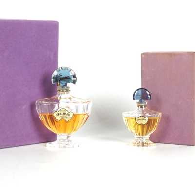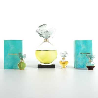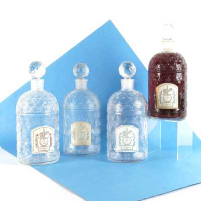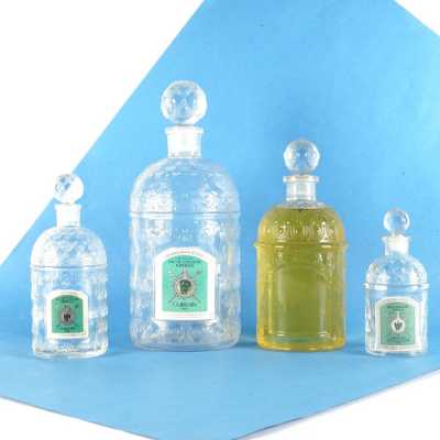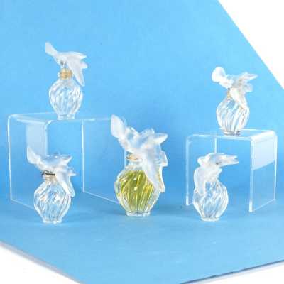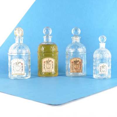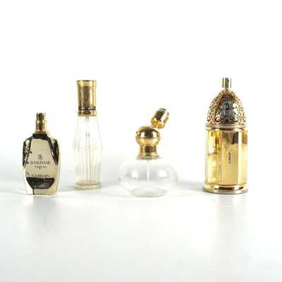 On joint quatre flacons (2) "Chant d'arômes" (H. 5.5 cm et 7 cm), "Chamade, huile pour le bain" (H. 7 ...