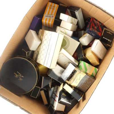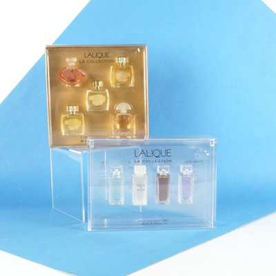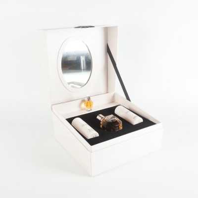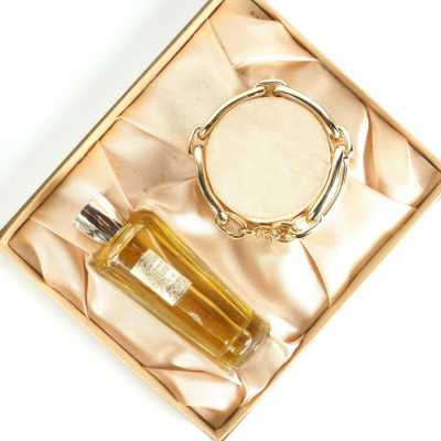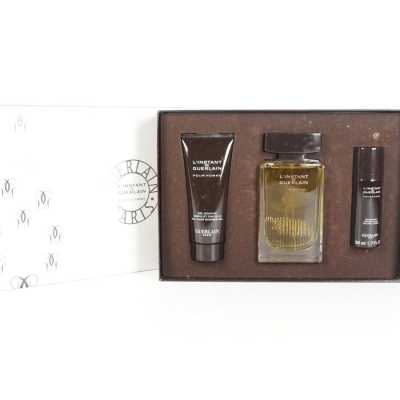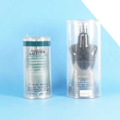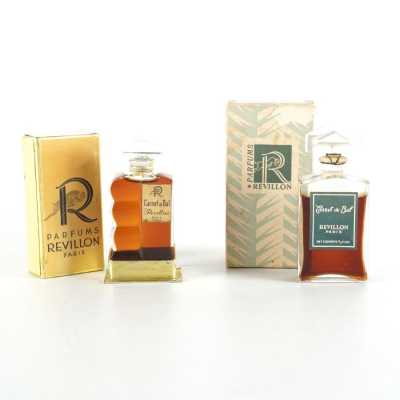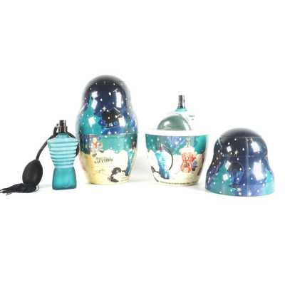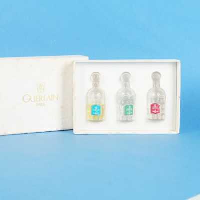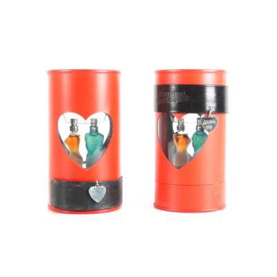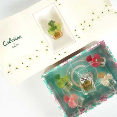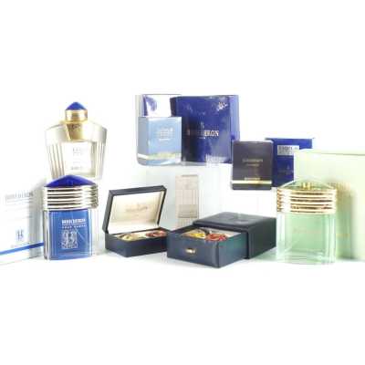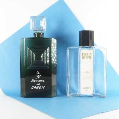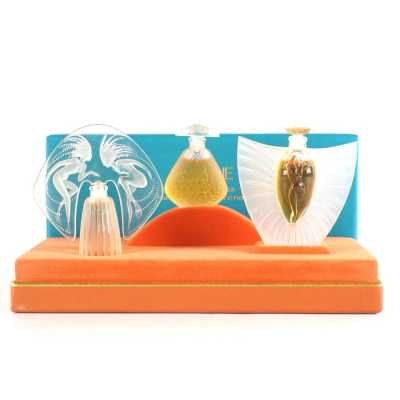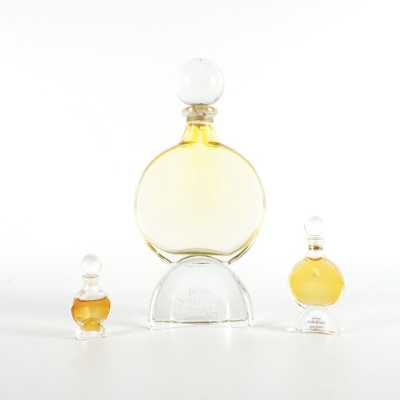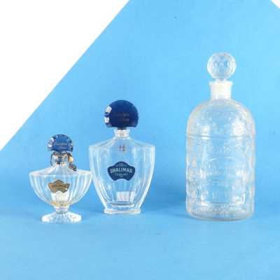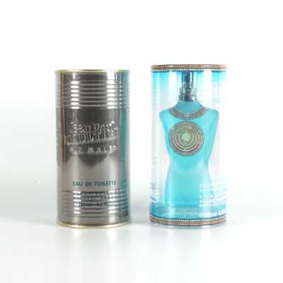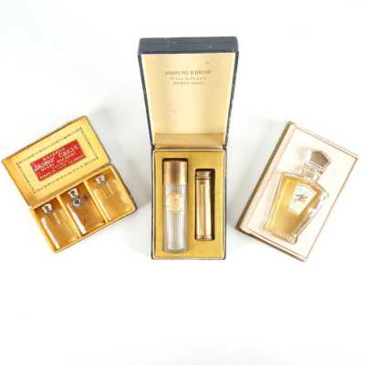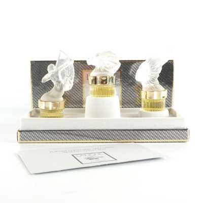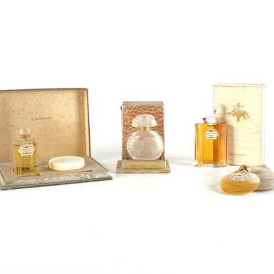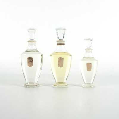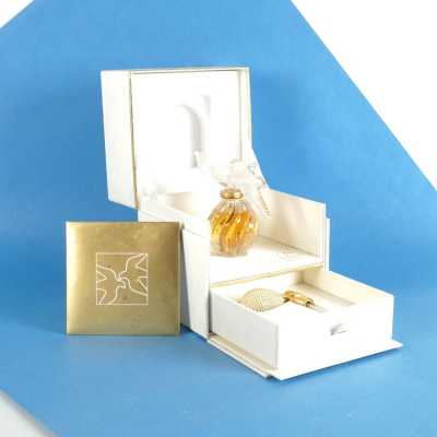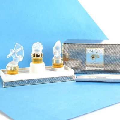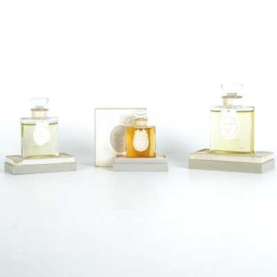 - Lucien LELONG : "Tout Lelong", coffret cylindrique contenant trois flacons en verre incolore (vides)