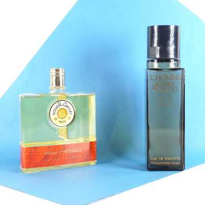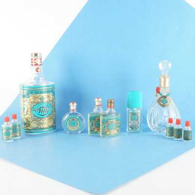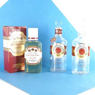 - Eau de Cologne, H. 8.5 cm (liquide en état d'usage, usures à l'étiquette).