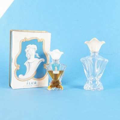- SILKA : "Fleur de tabac", flacon en verre incolore, H. 6.7 cm, dans sa boîte.