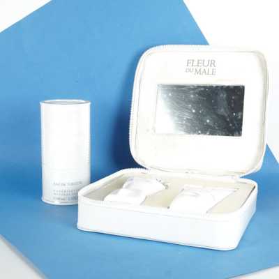 On joint "Fleur du Male", eau de toilette vaporisateur (40 ml) dans sa boîte métallique laquée blanc (non ouverts).