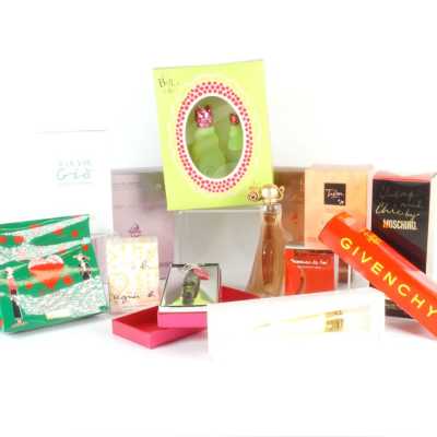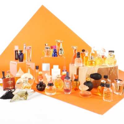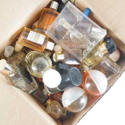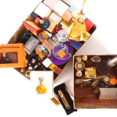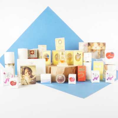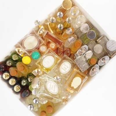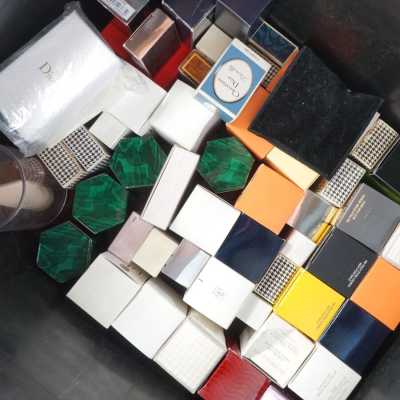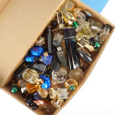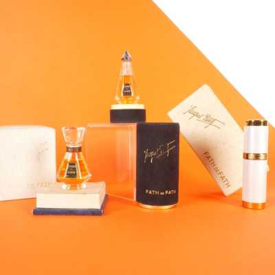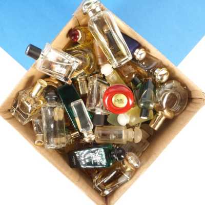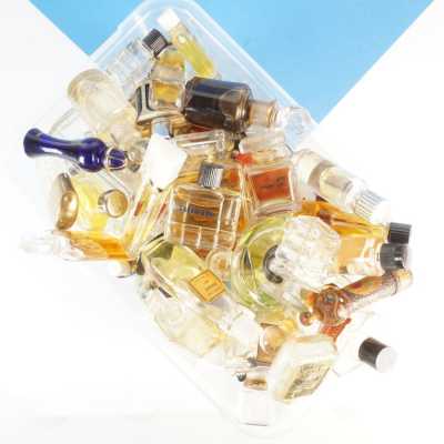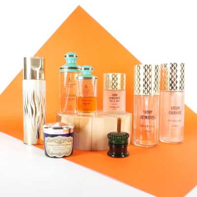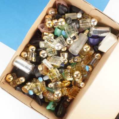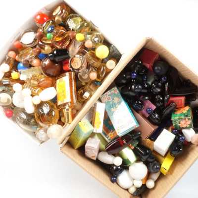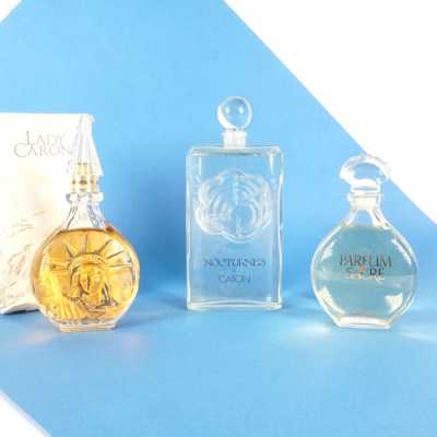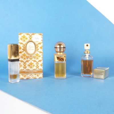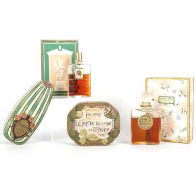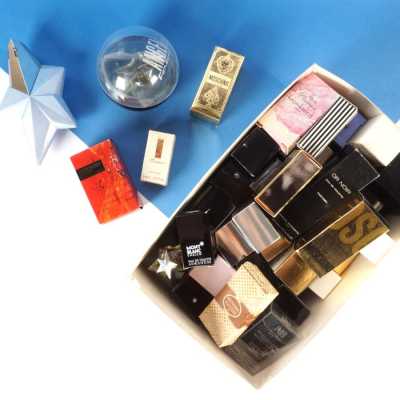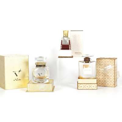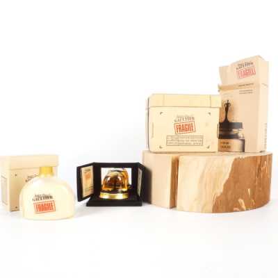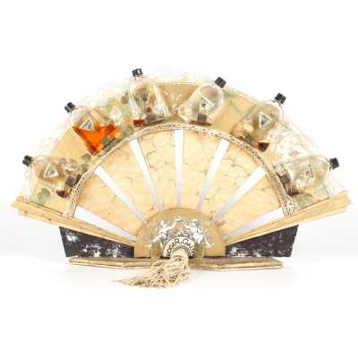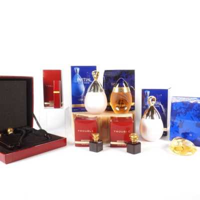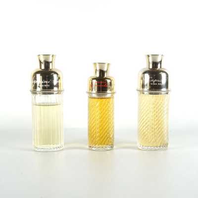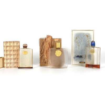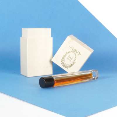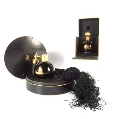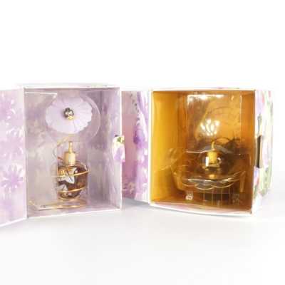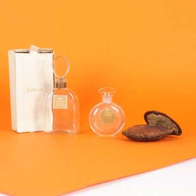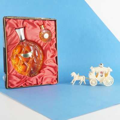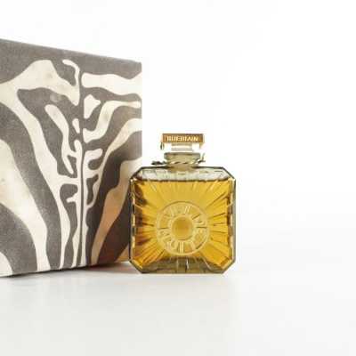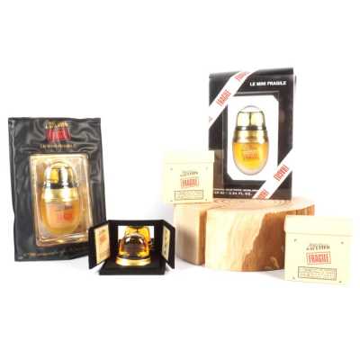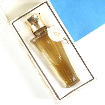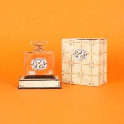 - MERRY-WALL : "Cubana", flacon tronconique à godrons, bouchon doré, étiquette argentée (usures), dans son emboîtage d'origine, H. Flacon : 6 cm (choc au bouchon, PDO supposé).
