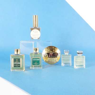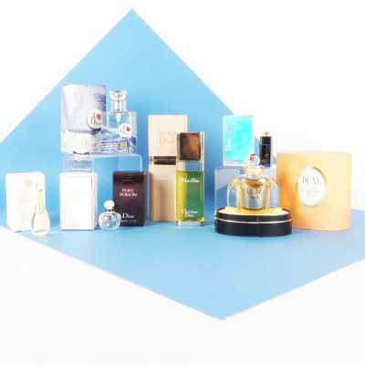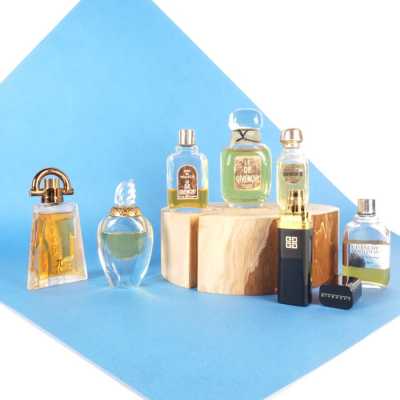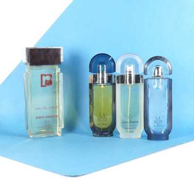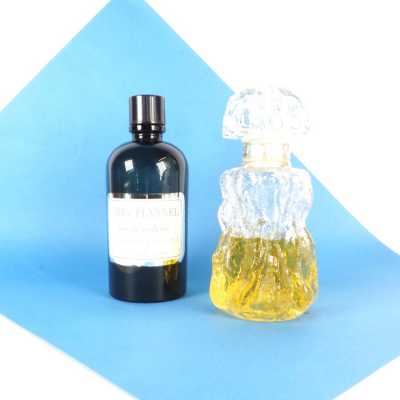 On joint un flacon en verre teinté bleu de la marque WORTH (vid...