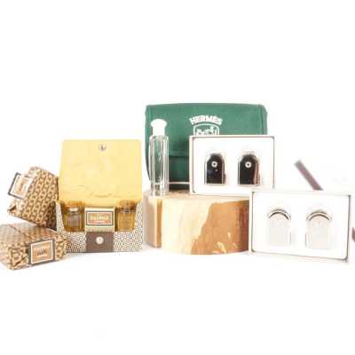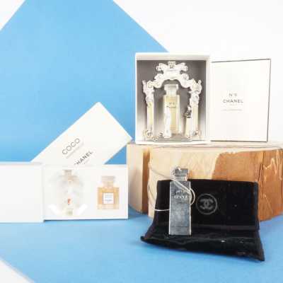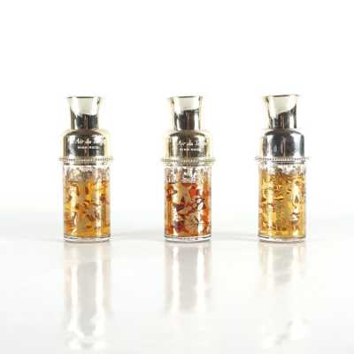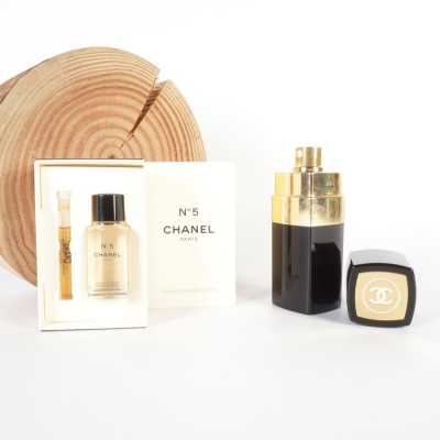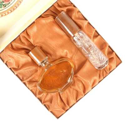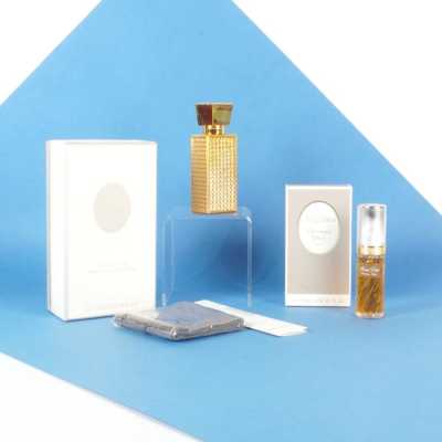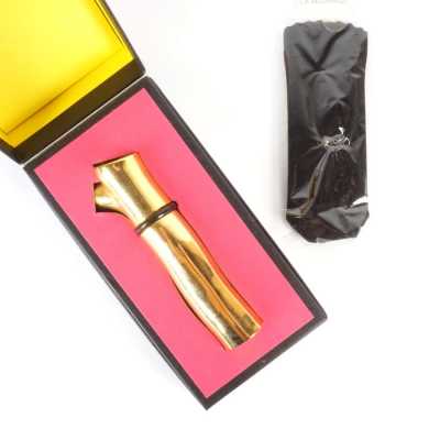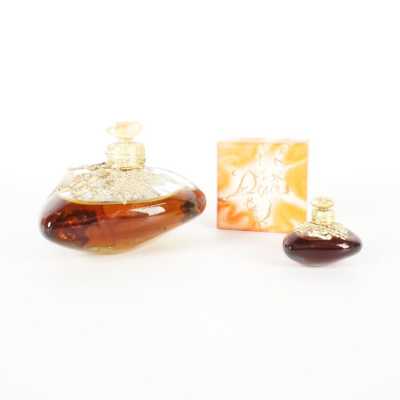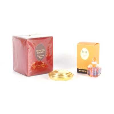 On joint de la même marque, un poudrier luxe rechargeable réf. 601, métal doré (Diam. 6.4 cm) et "Dune", flacon 5 ml dans sa boîte (liquide en ...