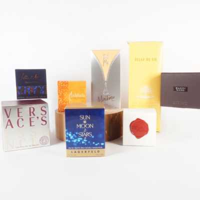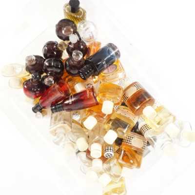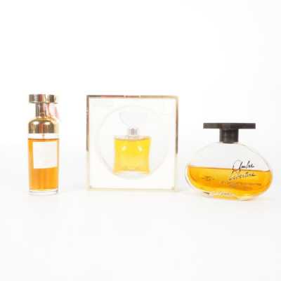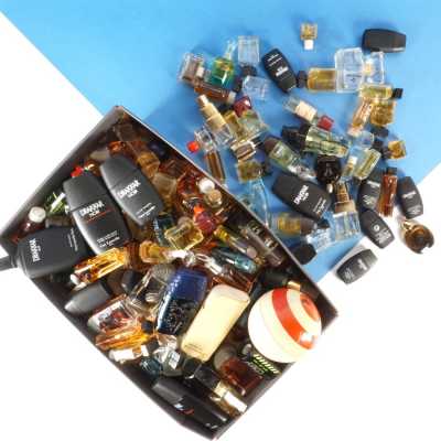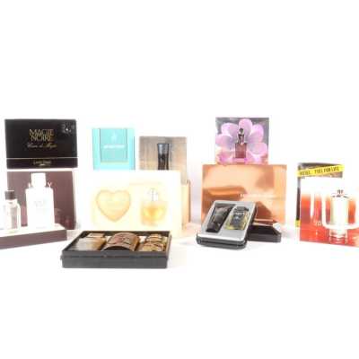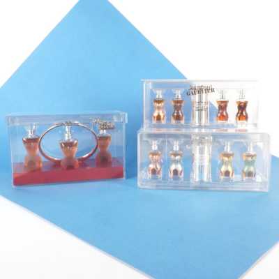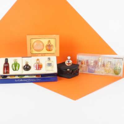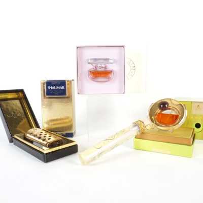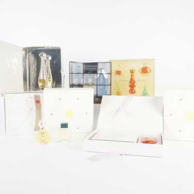 - ROCHAS : Coffret contenant cinq miniatures dont (1) Tocade, eau de toilette (3 ml), (1) Alchimie, eau de parfum (5 ml), (1) Eau de Rochas, eau de toilette (10 ml), (1) Rochas Man, eau de toilett...