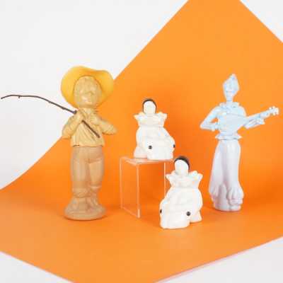 - Deux Pierrots "Tasha", blancs et noirs, H. 9.5 cm (vides).