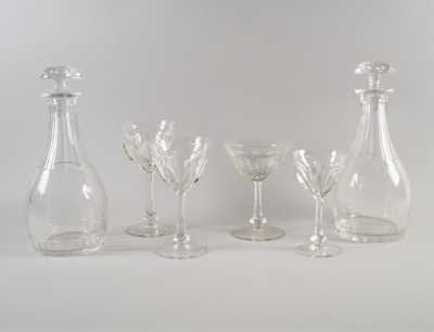 On joint deux carafes d'un modèle similaire avec bouchon, H. 27 c...