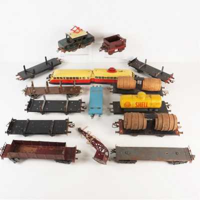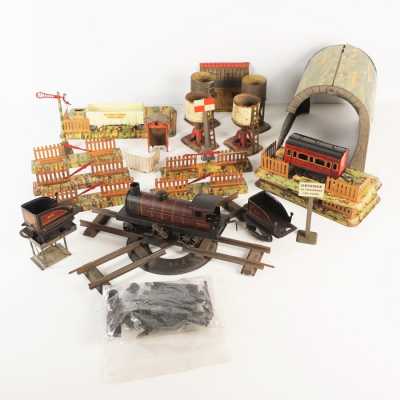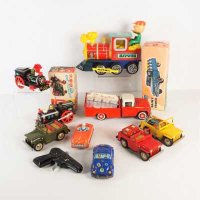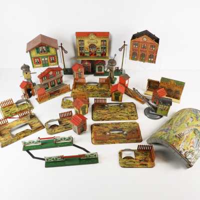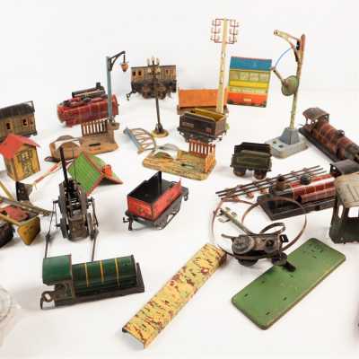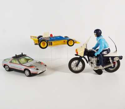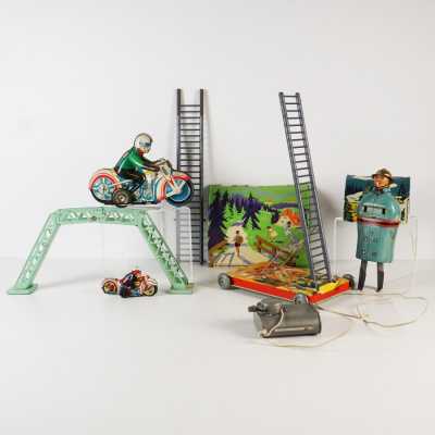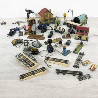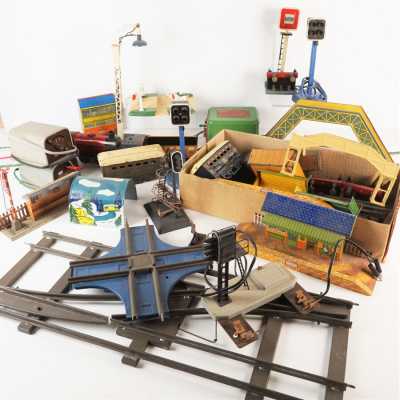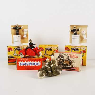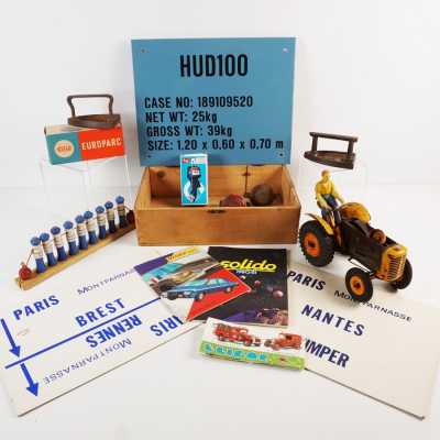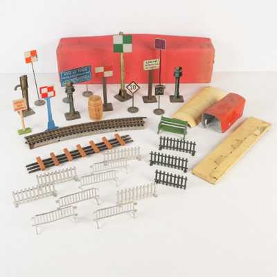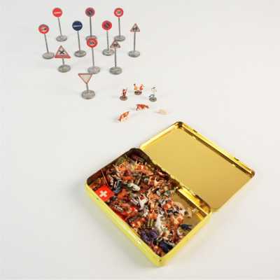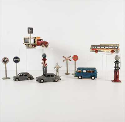 On joint un ensemble de deux pompes, un personnage, 3 véhicules (sans marques apparentes), 5 panneaux de signatu...