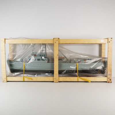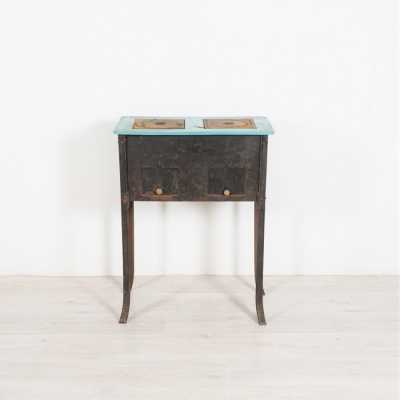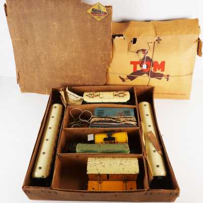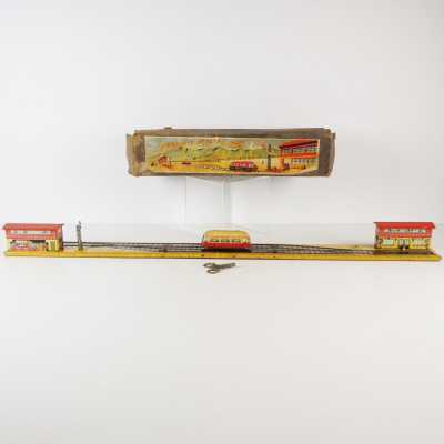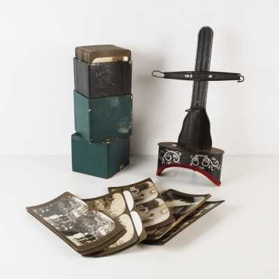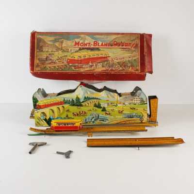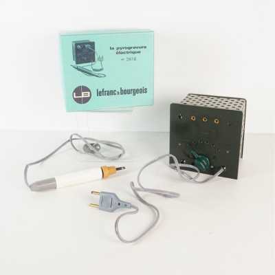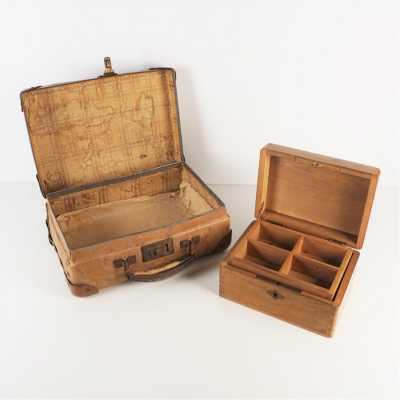 On y joint une boîte en bois ouvrant à un abattant et découvrant plusieurs compartiments (avec sa clé).