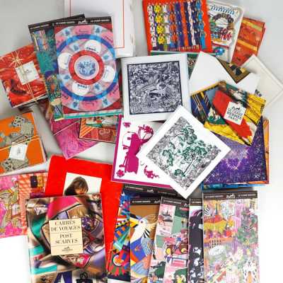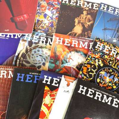 On y joint 3 catalogues de la maison Hermès (Collection d'élégances hiver 89-90, Les Quatre Saisons d'Hermès (1973), ...
