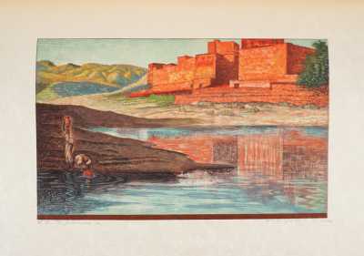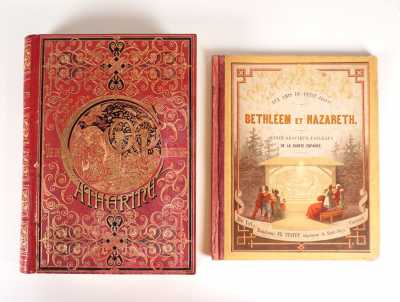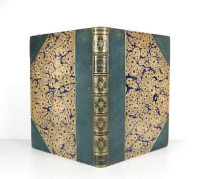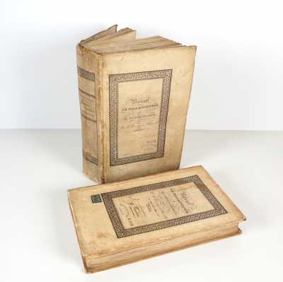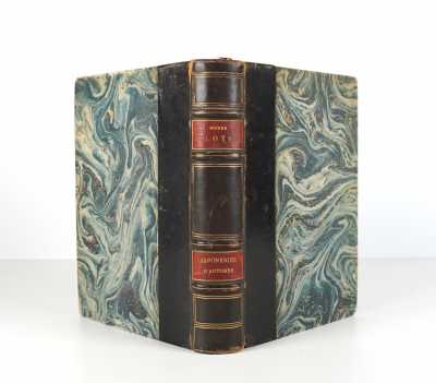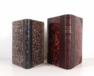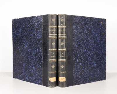 Manuscrit sur papier de 18 lignes de texte par page en arabe, en écriture naskhi, à l'encre noire, quelques termes et caractères à l'encre rouge. Double frontispice en unwân enluminé à l'...