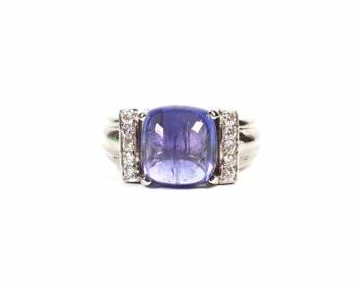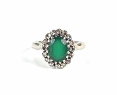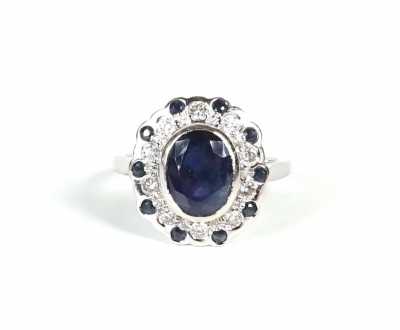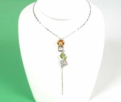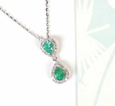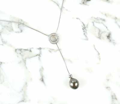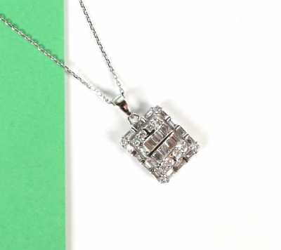 Présenté avec sa chaîne maille forçat en or blanc 18K (750/oo), L. 45 cm.