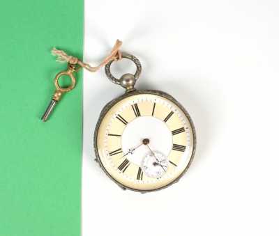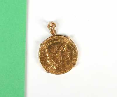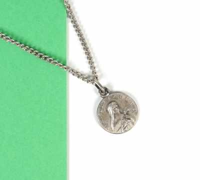 Présenté avec sa chaine en argent (800/oo), maille gourmette, L. 49 cm.
