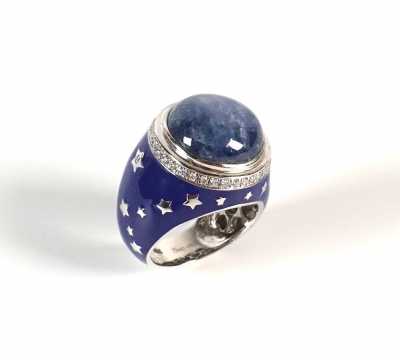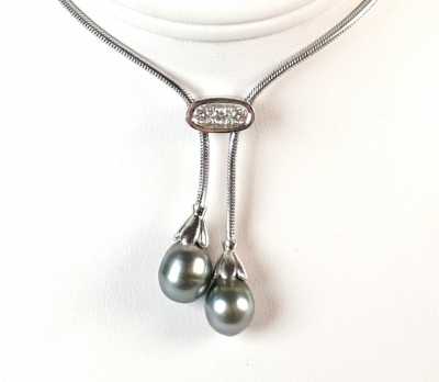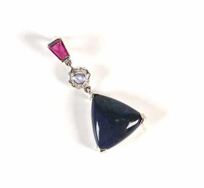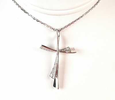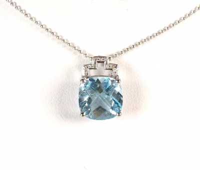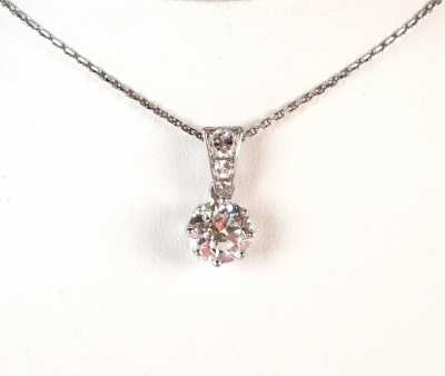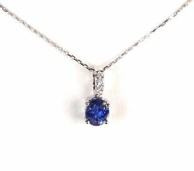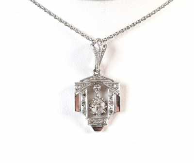 Présenté avec sa chaîne maille forçat diamantée en or blanc 18 K (750/oo), L. 45 cm.