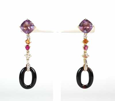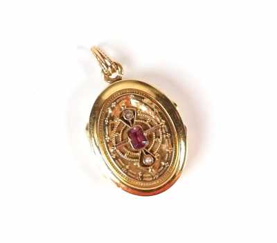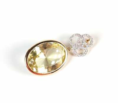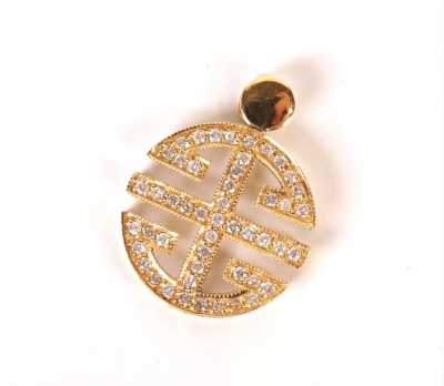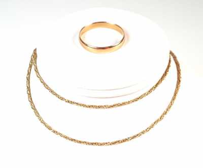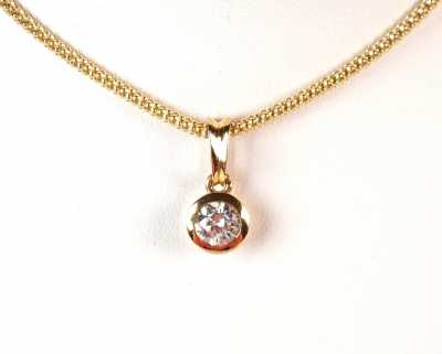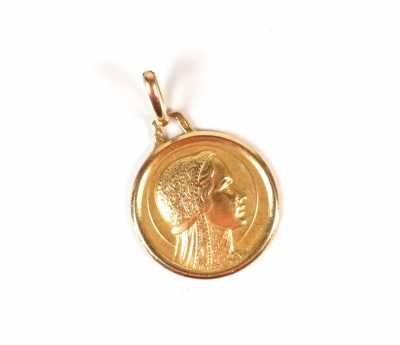 Il est retenu par sa chaine en or jaune 18 K (750/oo) maille tressée ronde, L. 38 cm.