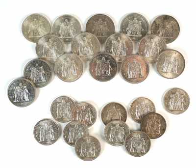- 20 x 5 Fr Semeuse dont : 7 x 1960, 3 x 1962, 4 x 1963, 4 x 196...