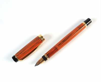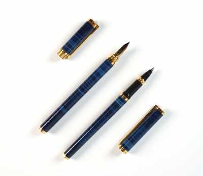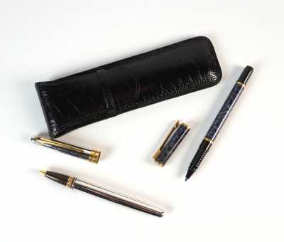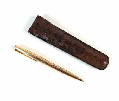 Présenté avec une housse en cuir d'autruche brun rapportée, L. 15 cm.