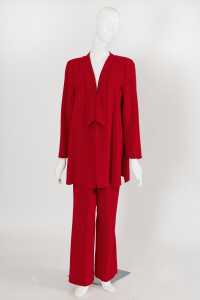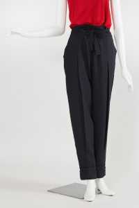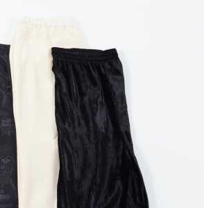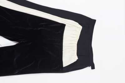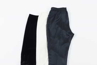 Ensemble de 3 pantalons, l'un en jersey viscose blanc, l'autre en soie noire, le dernier en velours lycra noir.