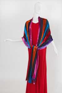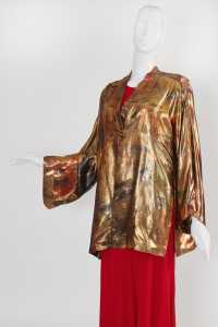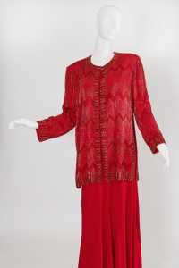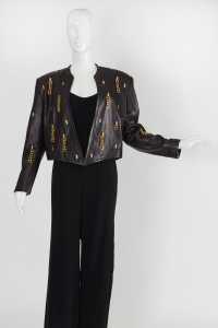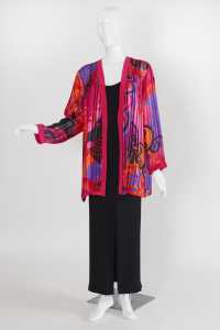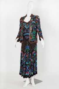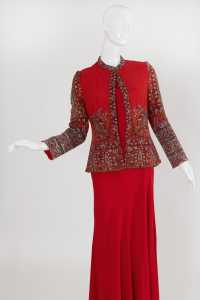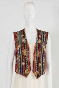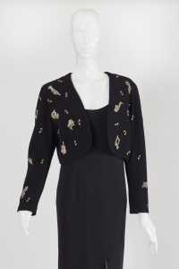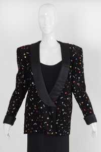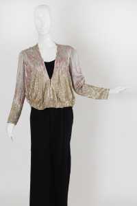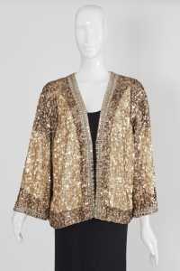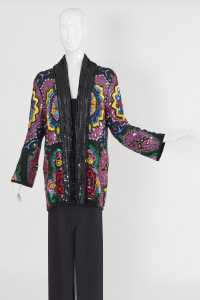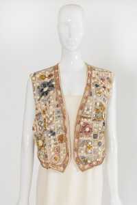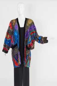 Veste en crêpe entièrement brodée de paillettes, rocailles et tubes multicolores.