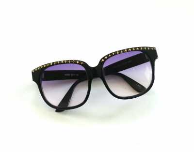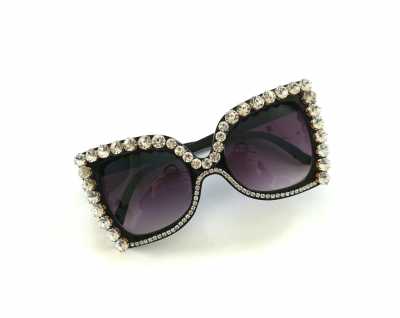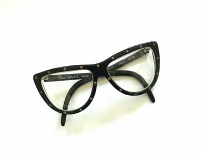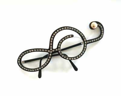 Lunettes de vue forme papillon, monture cerclée noire, strass.