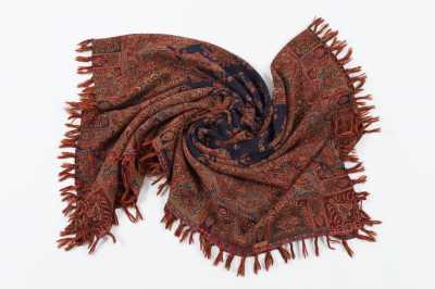 Châle en laine noir et marron, à décor cashmere, 130 x 140 cm environ.