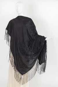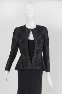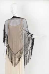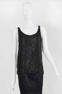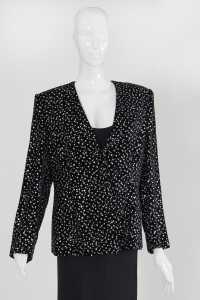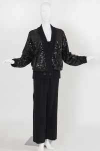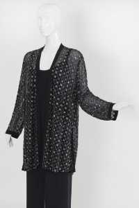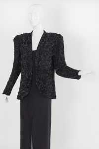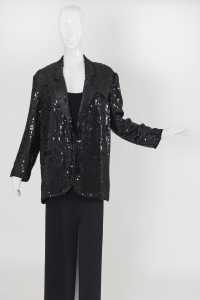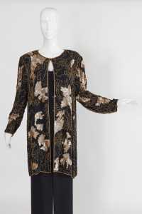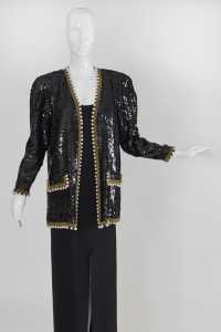 Veste noire en mousseline de soie entièrement pailletée et bordé de tubes noirs.