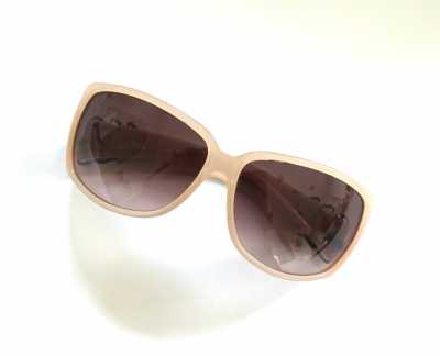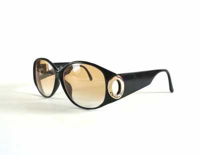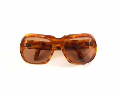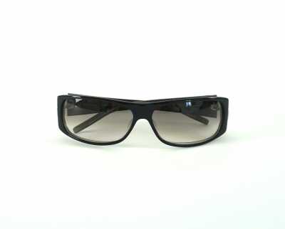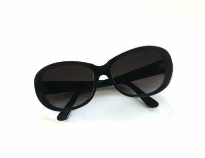 Lunettes de soleil, monture rectangulaire cerclée noire.