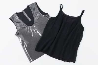 l'un en mousseline noire plissé mignon, l'autre en lamé argent.