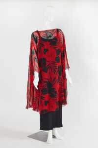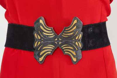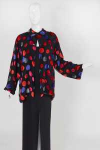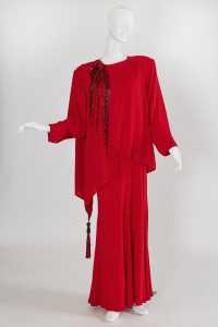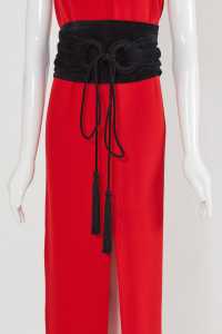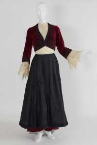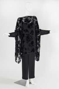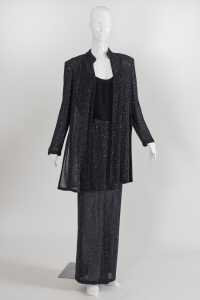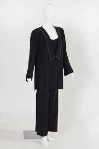 L'un en soie noire Marina RINALDI, les 2 autres de Mine VERGÈS en velours lycra noir et en soie écrue avec strass.