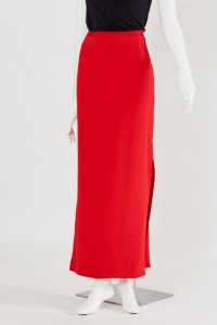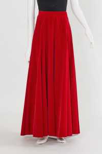 Jupe longue évasée à panneaux en velours de coton rouge.