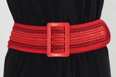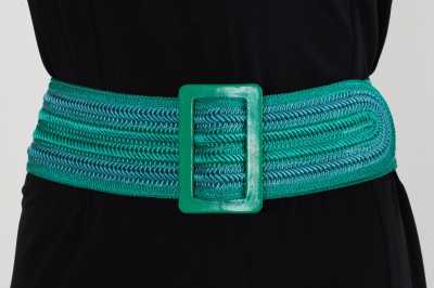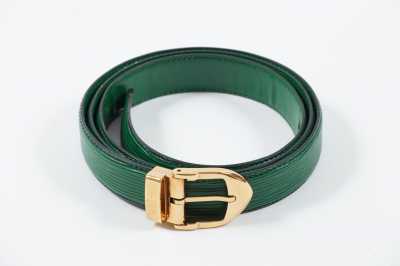 Ceinture en cuir vert épi, boucle dorée, L. 125 cm.