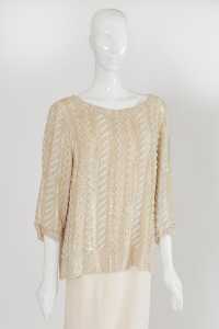 Pull blanc orné de paillettes sur mousseline, poignets et bas du pull en bord côte.