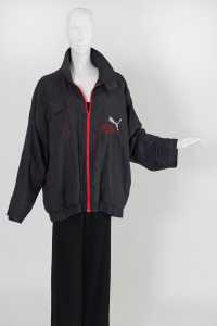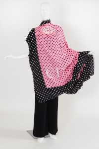 Blouson en toile noire imperméabilisée, annoté "Nana citoyenne du monde", à l'intérieur la reproduction du portrait de l'artiste.