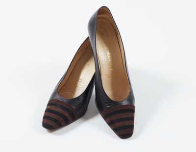 Escarpins double bride en cuir et tissu façon ottoman et satin.